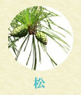 漢方では去風湿・止痒などの効能があり、リウマチなどによる麻痺や関節痛、湿疹、掻痒症、浮腫、打撲傷などに用います。古来、松葉は「仙人の食」といわれ、穀類を断って松葉を食べると体が軽くなって不老長寿が得られると伝えられています。